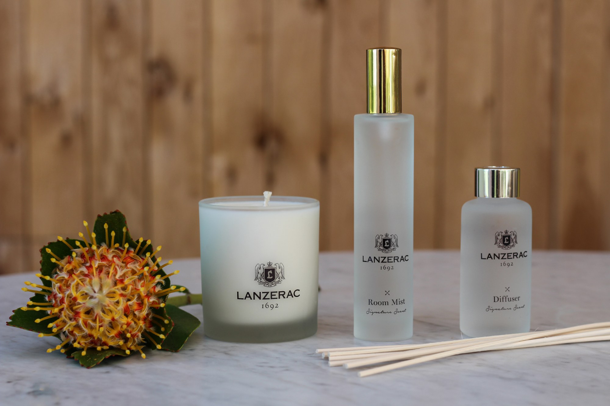 Our signature scent which can be enjoyed as a candle, room mist or diffuser, was specifically created to help you settle into the Lanzerac state of mind no matter where you are. Crafted with all-natural ingredients alongside notes of lime zest, cardamom, watery lotus and green woods, this collection helps to soothe the mind and body. The refreshing blend draws from some of nature’s most invigorating fruits, spices and plants.